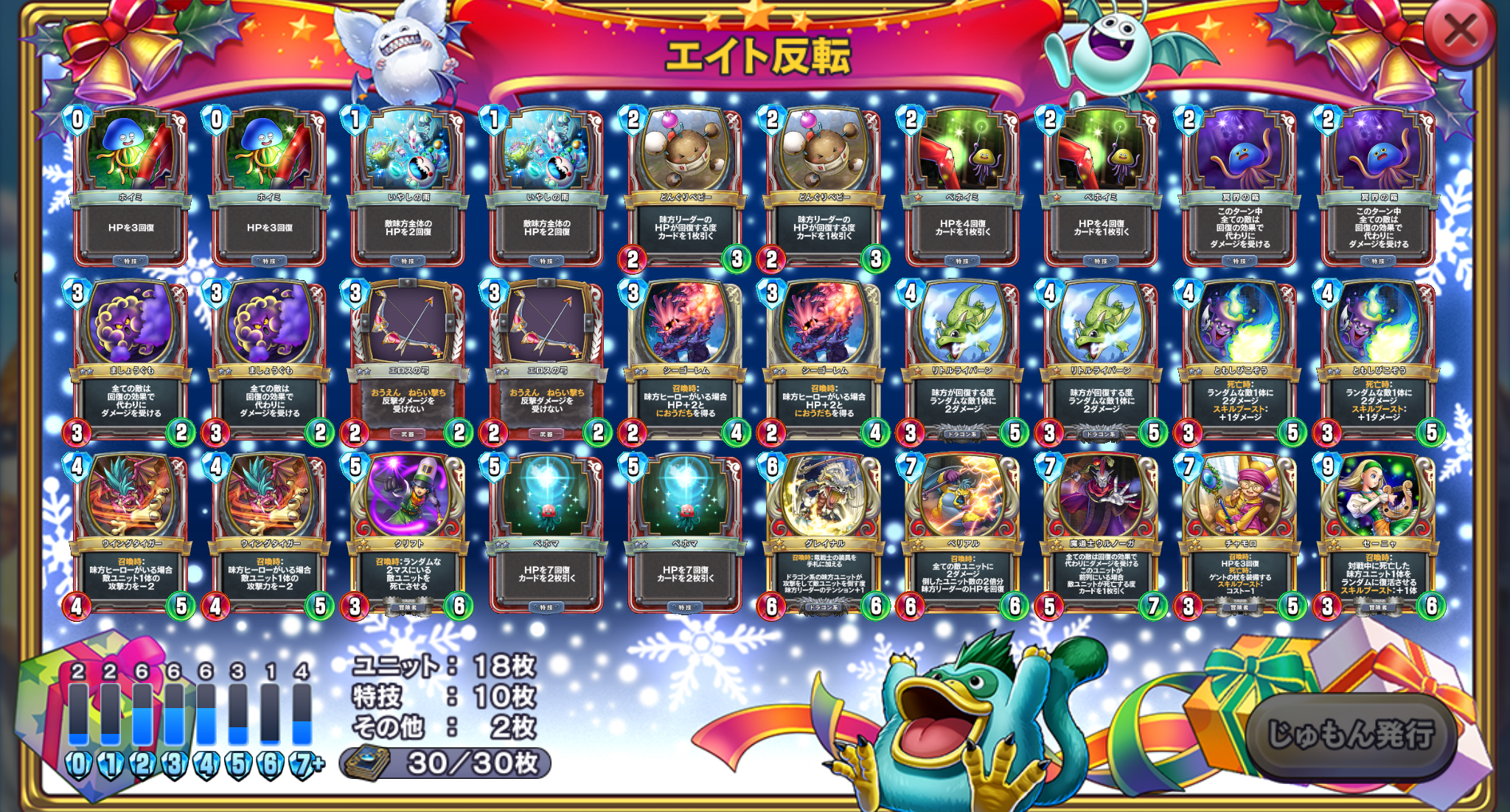 1 | 9 | 3 | 6 | 召喚時:対戦中に死亡した味方ユニット1体をランダムに復活させる。スキルブースト:+1体 |