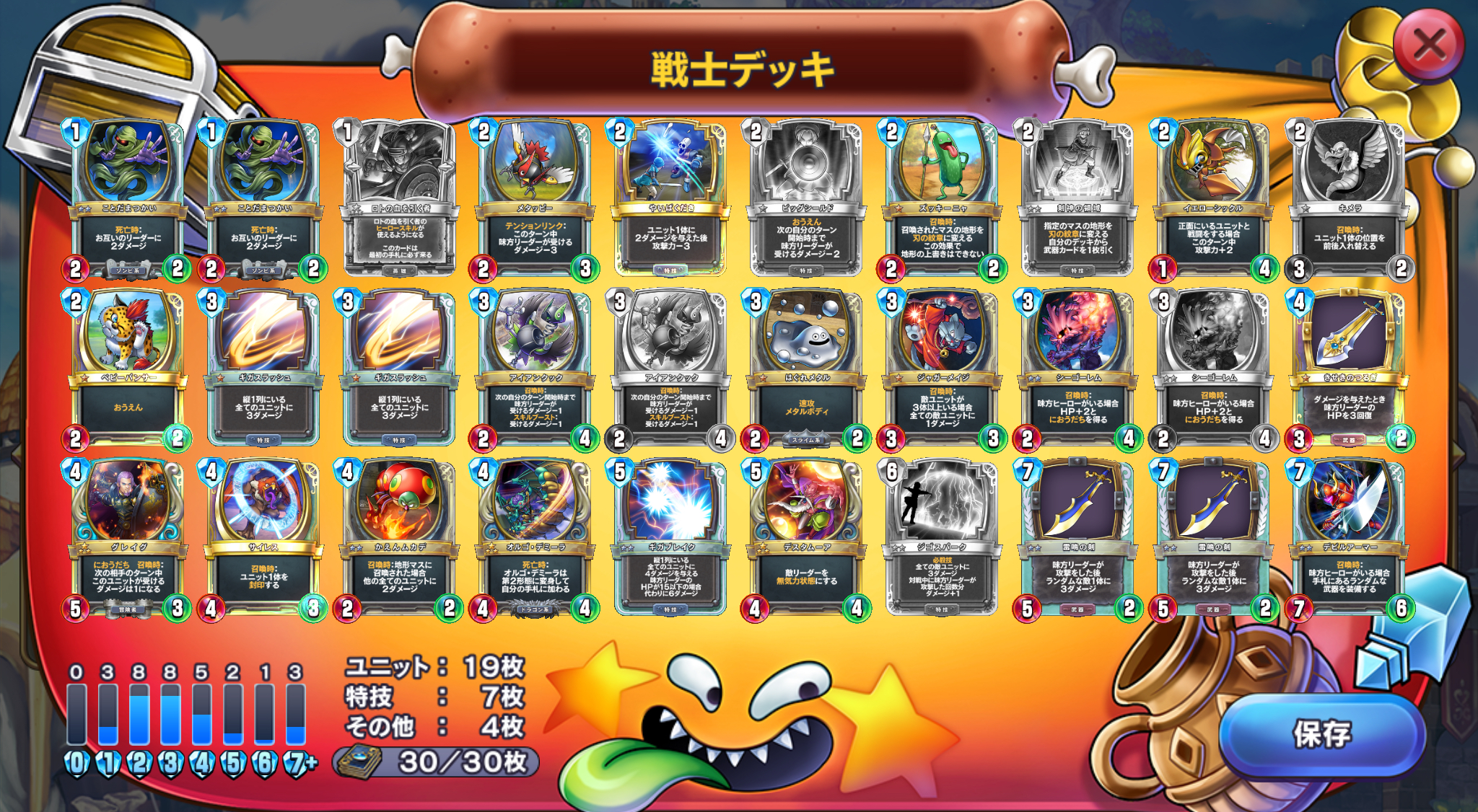 2 | 7 | 5 | 2 | 味方リーダーが攻撃した後ランダムな敵1体に3ダメージ |