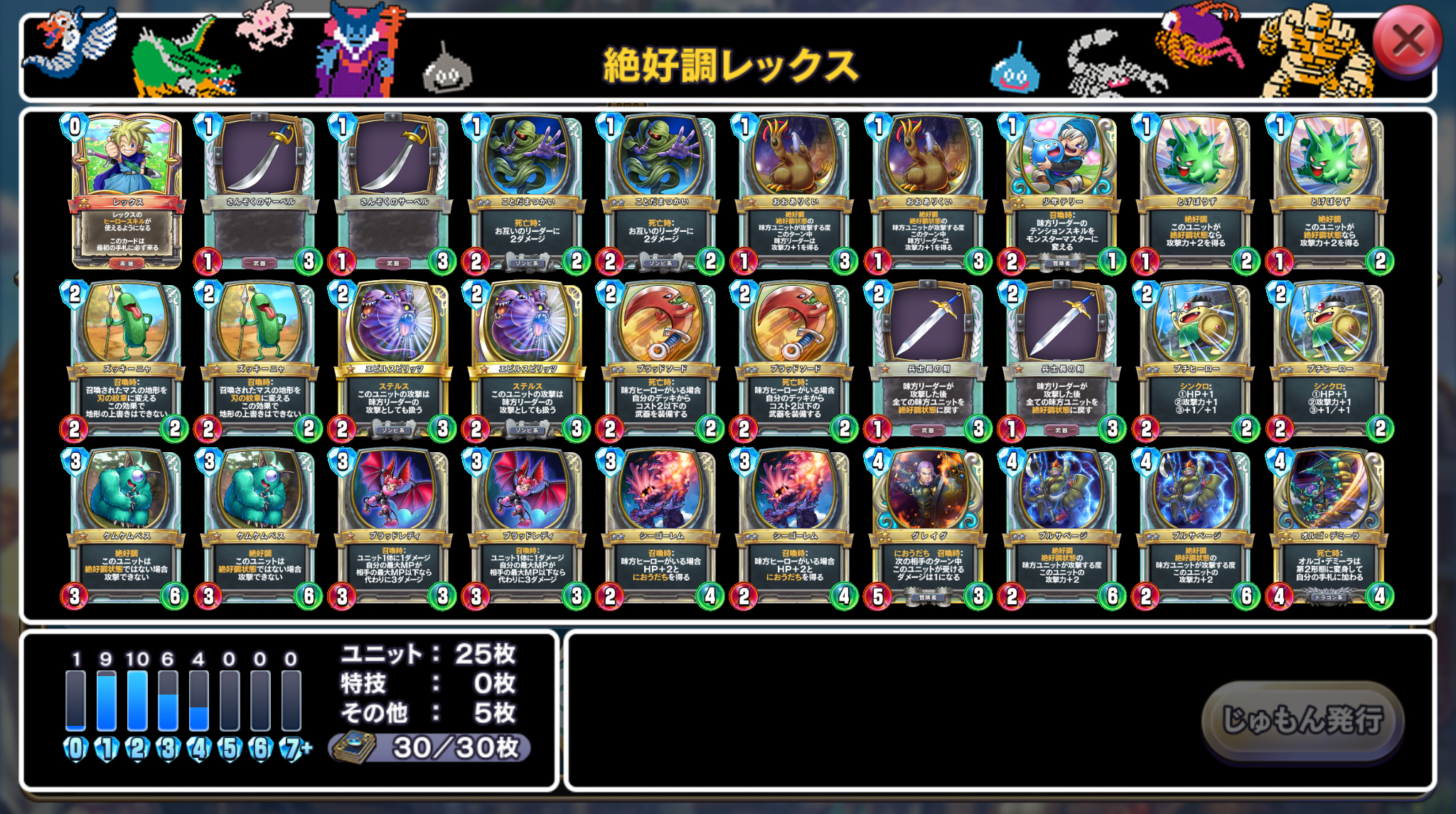 絶好調つきのユニットとして少年テリー、おおありくい、とげぼうず、ケムケムベス、ブルサベージなどが入っていて、これらのユニットを兵士長の剣で絶好調状態に戻す動きが強力。