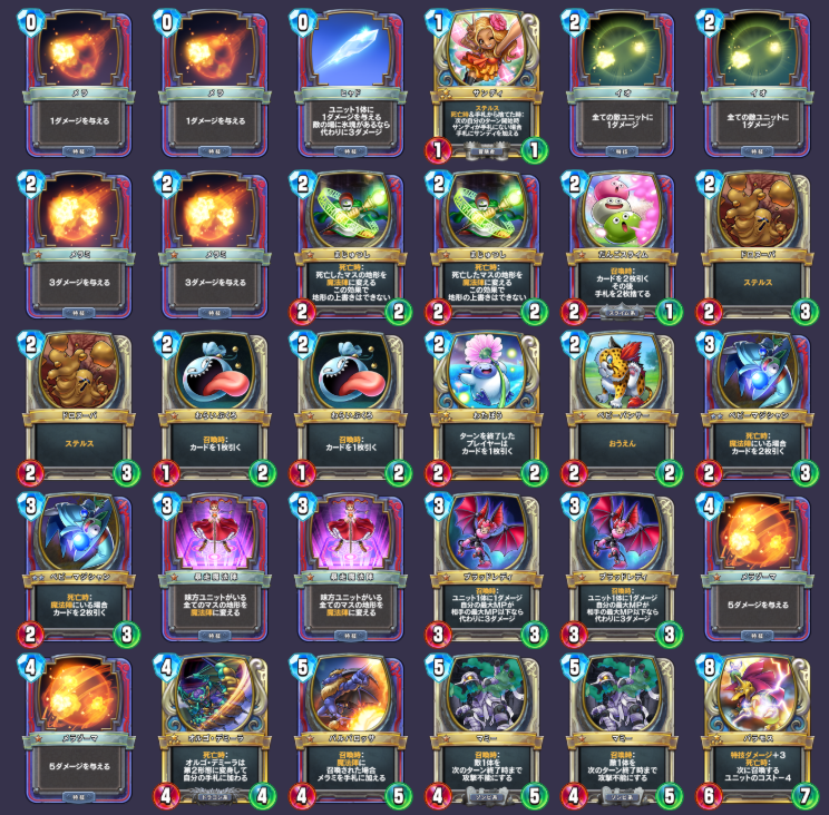 | カード名称 | 枚数 | コスト | 攻 | HP | 効果 |